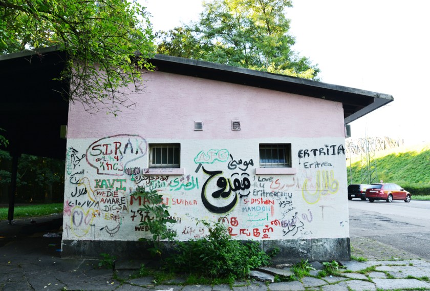 12 Uhr, Landschaftspark Wiese, Basel: Hier hatte Abatnis die Nacht verbracht. Er war nicht der Einzige. Hinter dem WC-Häuschen am Parkrand liegen drei zerrissene Matratzen. Zwei dunkelhäutige Personen schlafen darauf, eingelullt in Decken und Kartonplatten. An die Wand hat jemand «I love Eritrea» gesprayt.