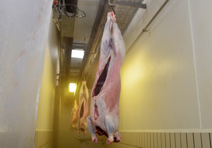 Am Ende des Gangs zwischen Warteraum und Schlachthalle werden die Tiere mit einer Elektrozange betäubt. Bei den Kälbern, die an einem anderen Band geschlachtet werden, funktioniert die Betäubung via Bolzenschuss. Schlächter Gündogdu, der gläubige Muslim, findet das gut so. «Eine Betäubung muss sein, sonst hätte ich Bedenken, die Tiere zu schlachten.» Dann verfällt er wieder in seinen gewohnten Rhythmus. Nackengriff, «Allahu akbar, Allahu akbar, Allahu akbar», Blick nach Mekka, «Bismillahirrahmanirrahim», Schnitt. Die Lämmer bekommen von den Gottesrufen nichts mehr mit.