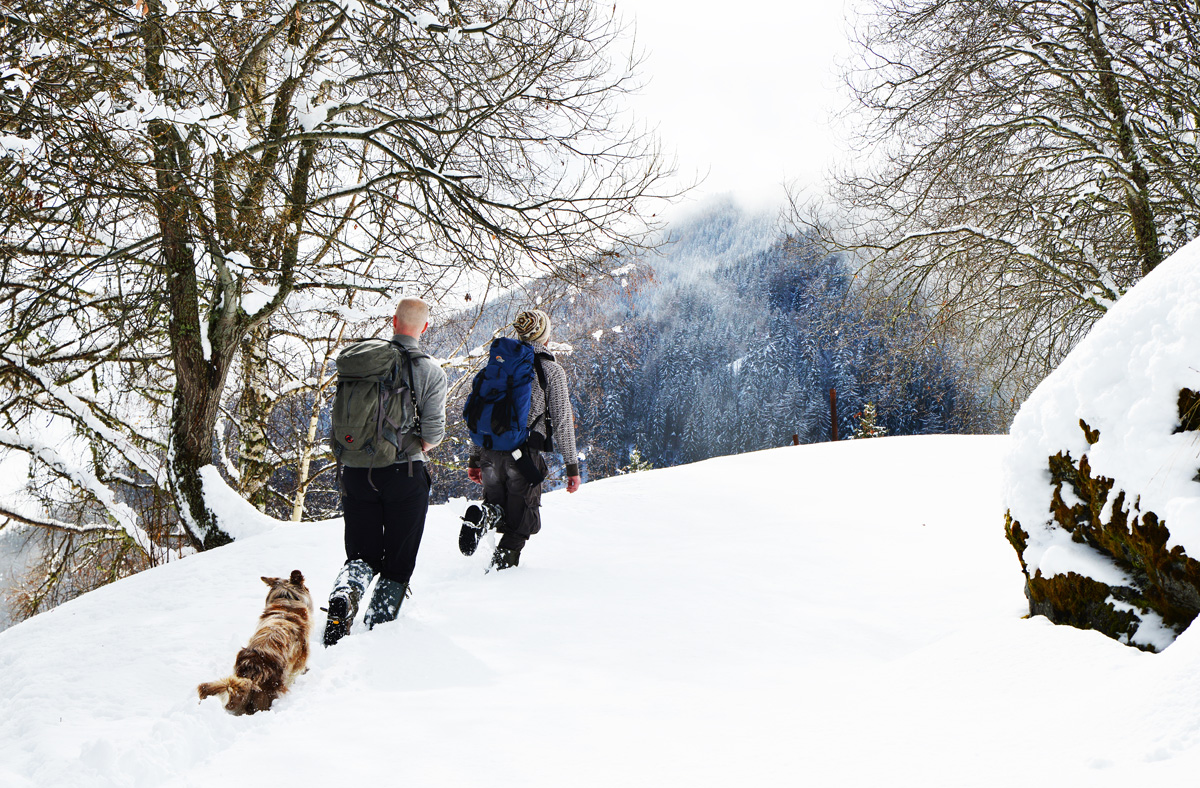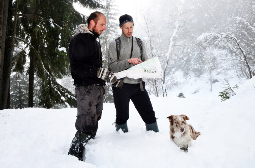 David Gerke stapft durch den Schnee. Sein Border Collie Mila hüpft ihm von Fussstapfe zu Fussstapfe hinterher. Anstrengend ist das. So anstrengend, dass Mila nicht einmal die beiden Gämsen bemerkt, die steil links unten durch den Walliser Winterwald springen.