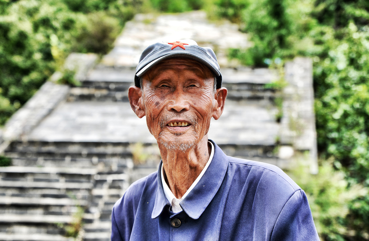 Früher, als er noch besser sehen konnte, hat Herr Wu in den Kastanienwäldern im Schatten der Mauer gearbeitet. 20 Jahre sei das her. Seither steht der 87-Jährige auf dem einsamen Mauerpass und wartet auf Wanderer. Sagen tut er nicht viel, und wenn, dann so leise, dass man ganz genau hinhören muss, um den Greis mit dem verwaschenen Mao-Käppchen und dem viel zu grossen Hemd zu verstehen.